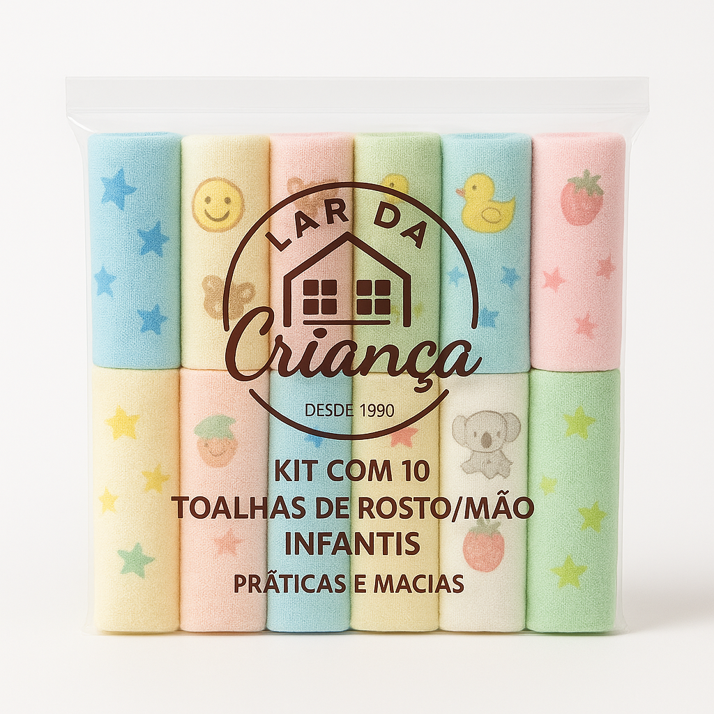 Toalhas Infantis de Mão e Rosto Kit com 10 unidades