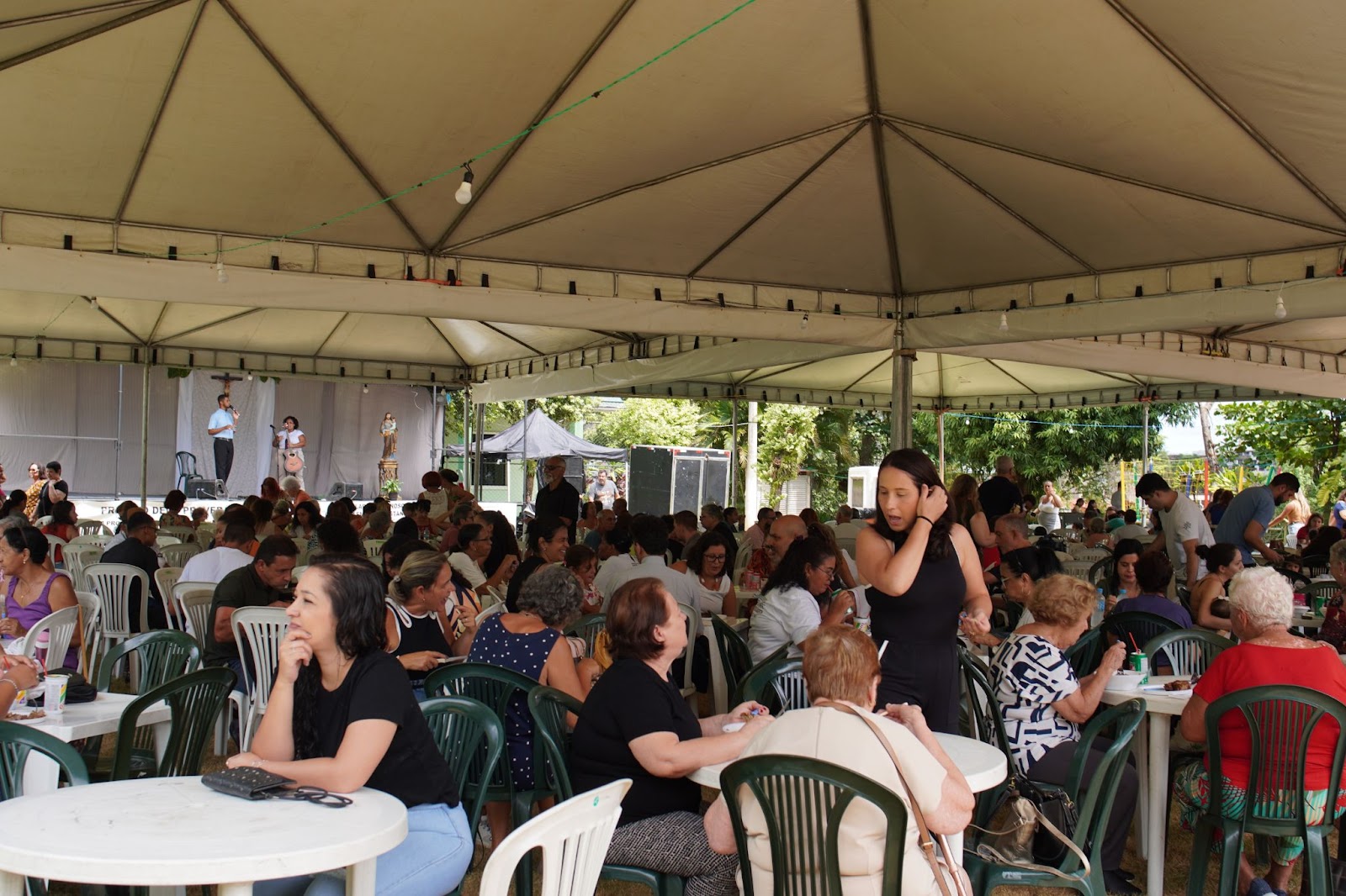 Houve uma vasta oferta de delícias, incluindo churrasco suculento, batata frita crocante, hambúrgueres saborosos, além de refrigerantes, doces variados e bolos irresistíveis. Cada detalhe foi pensado para proporcionar bons momentos e fortalecer os laços de comunhão entre todos. Foi um período de celebração da fé e da vida, marcado pela alegria contagiante e pela partilha.